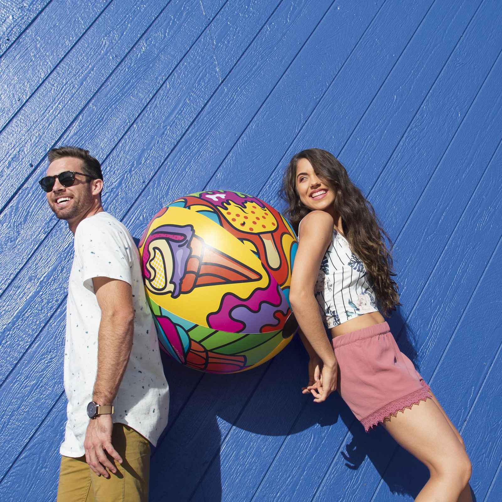 Bola de Praia Insuflável Bestway® Pop Art para a praia ou piscina com um divertido design multicolorido.