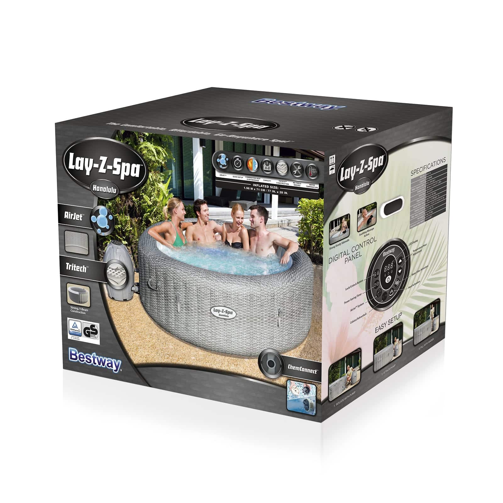 Depois de um longo dia, não existe nada mais relaxante do que mergulhar na água quente e borbulhante no seu próprio quintal. O Lay-Z-Spa® Honolulu AirJet™ proporciona uma experiência de massagem relaxante para um máximo de 7 pessoas, sem deixar de ser rápido e fácil de montar. Basta instalar a bomba e observar como se enche.