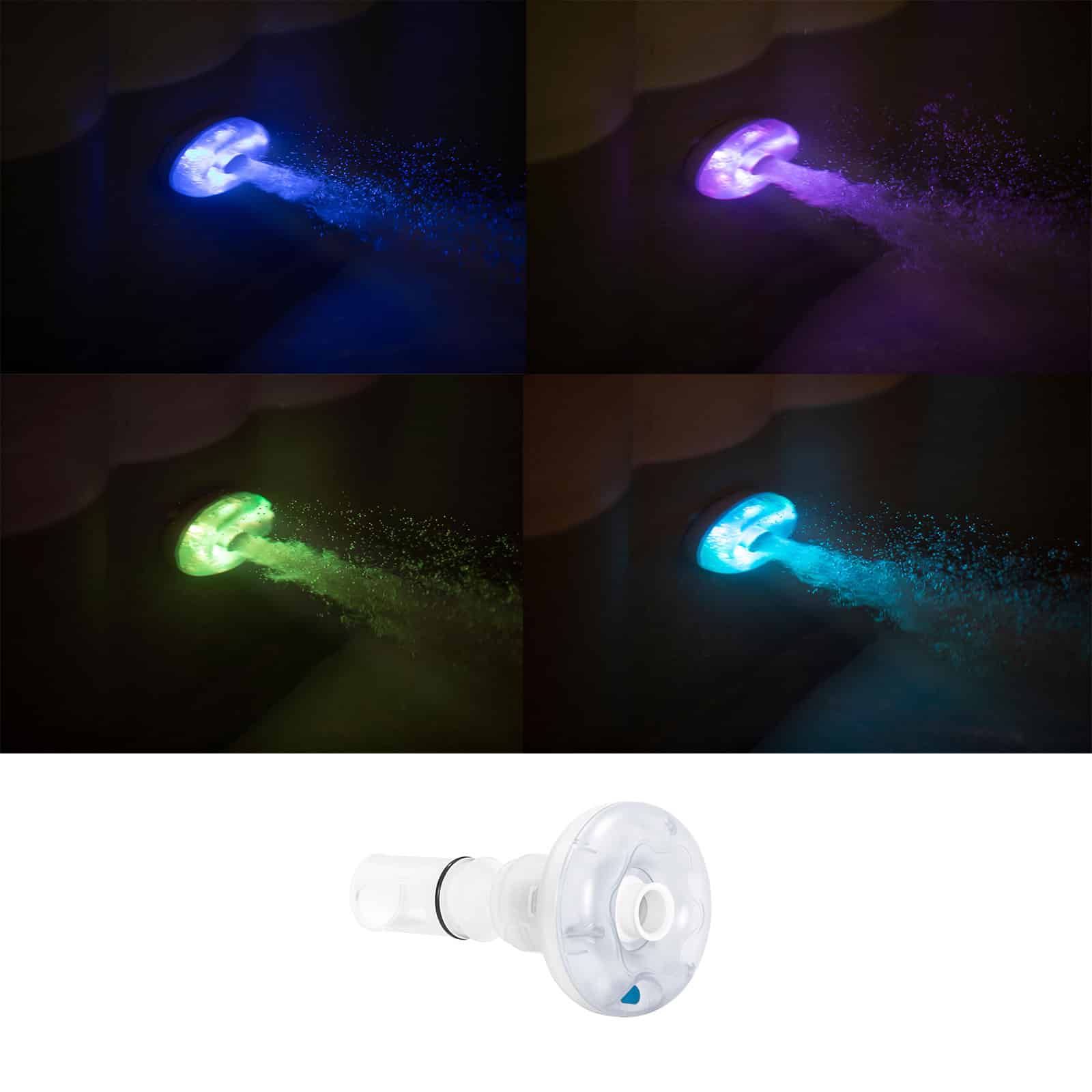 Duas luzes LED ColorJet ativadas por água adicionam ambiente à sua experiência de spa.