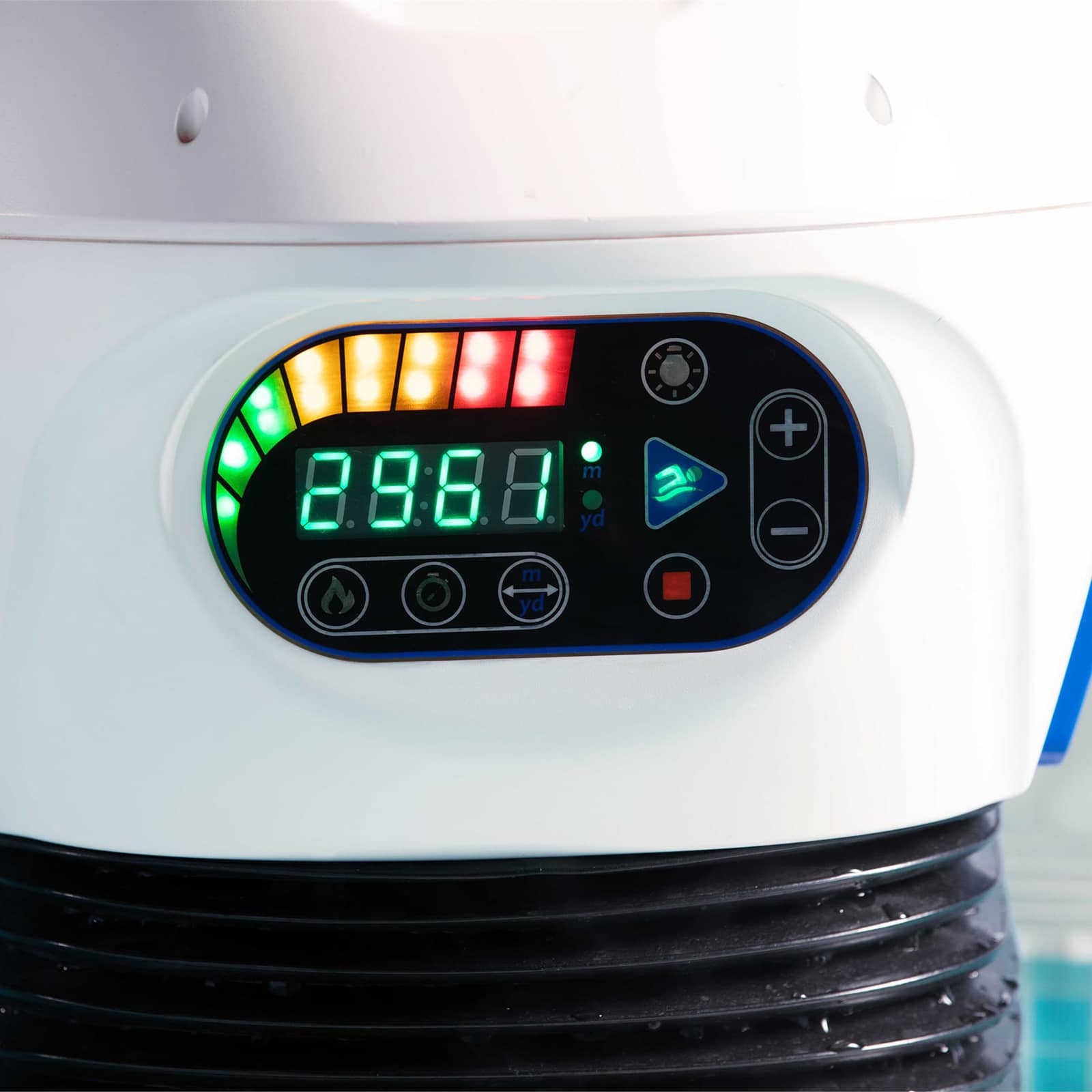 Esta máquina de fitness é compatível com piscinas acima e ao nível do solo e pode ser instalado facilmente, seguindo o manual de instruções. Esta máquina também tem um comando à prova de água que permite que o utilizador ajuste a velocidade e pause o fluxo de água consoante a preferência. Também tem uma luz LED, para que também possa ser usado à noite.