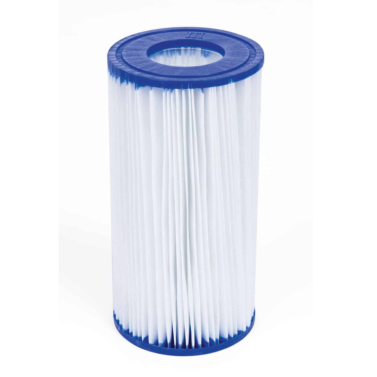 Conteúdo: 1 piscina, 1 bomba de filtragem (compatível com cartucho de filtro tipo III), 1 escada de segurança, 1 cobertura de piscina, 1 dispensador ChemConnect™.