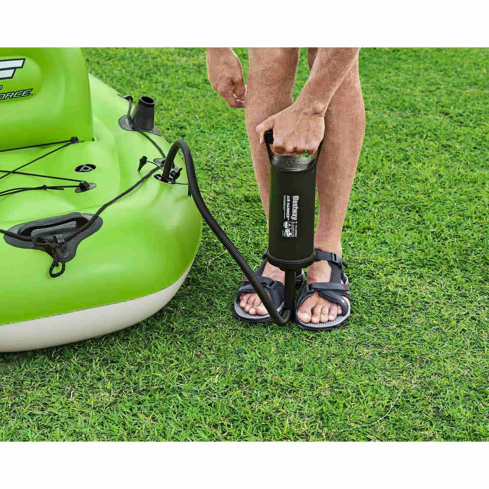 O melhor é que ele é super prático: você infla com a bomba manual Air Hammer quando precisa e desinfla ao terminar.