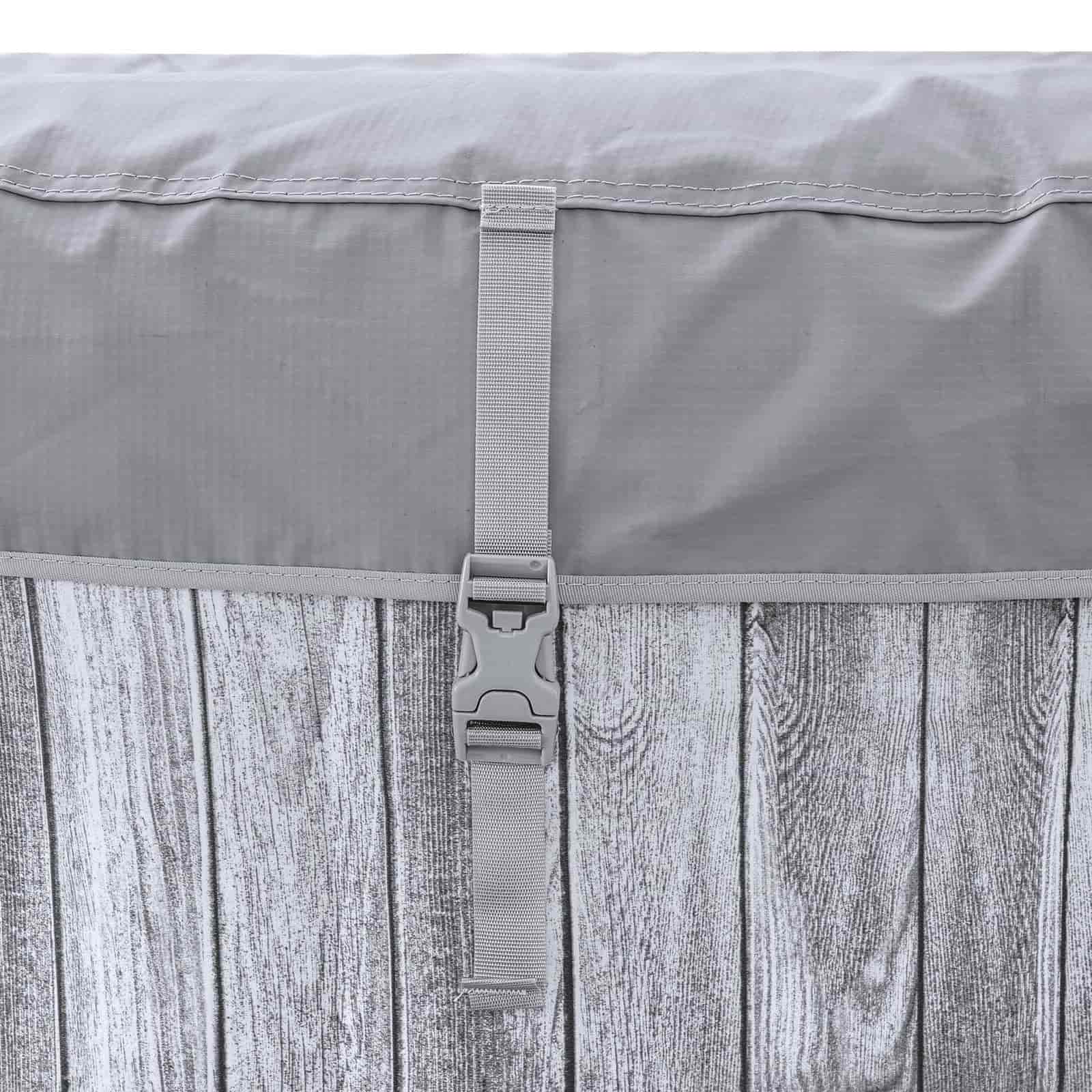 A parede externa deste spa é fabricada com DuraPlus de 3 camadas, um material comprovadamente resistente a perfurações e com alta resistência ao estiramento. Isso garante que o spa mantenha sua forma, independentemente de quantas vezes seja inflado e desinflado.