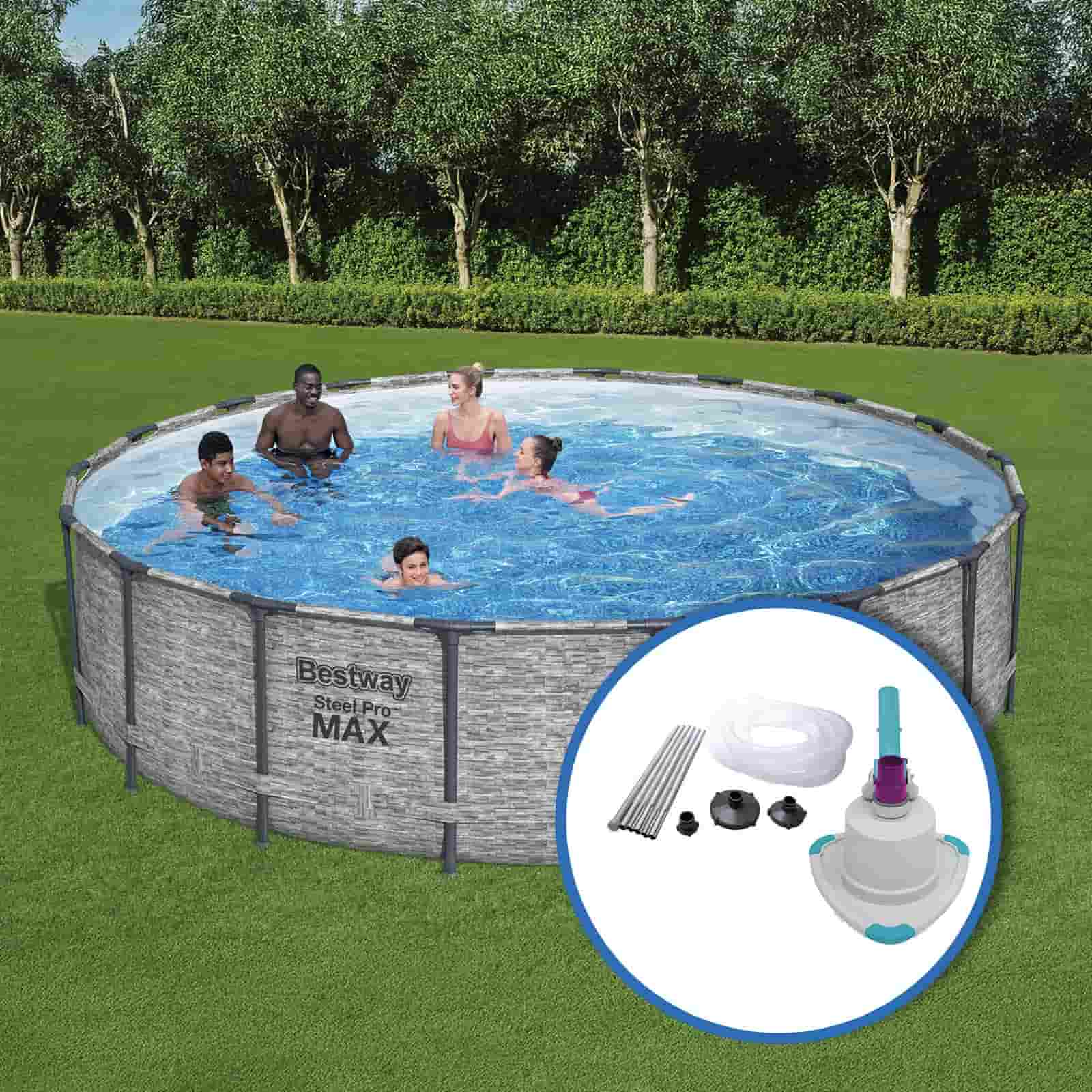 Pack Piscina Steel Pro Max pedra 549 x 122 cm com Kit de limpeza de fundo