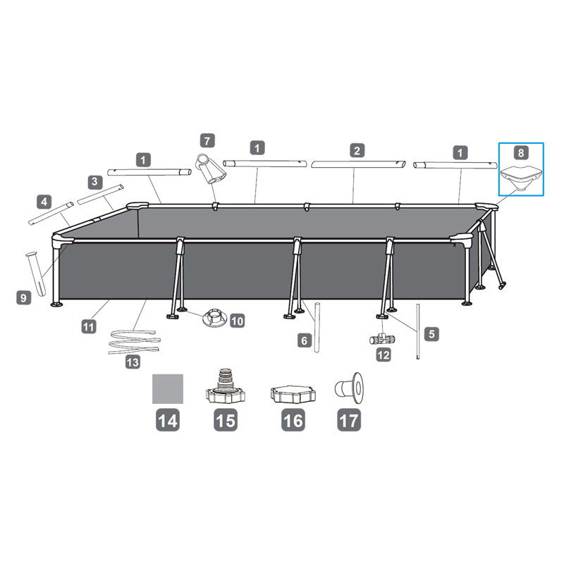 Conector de canto para piscina de 399 x 208 x 81 cm