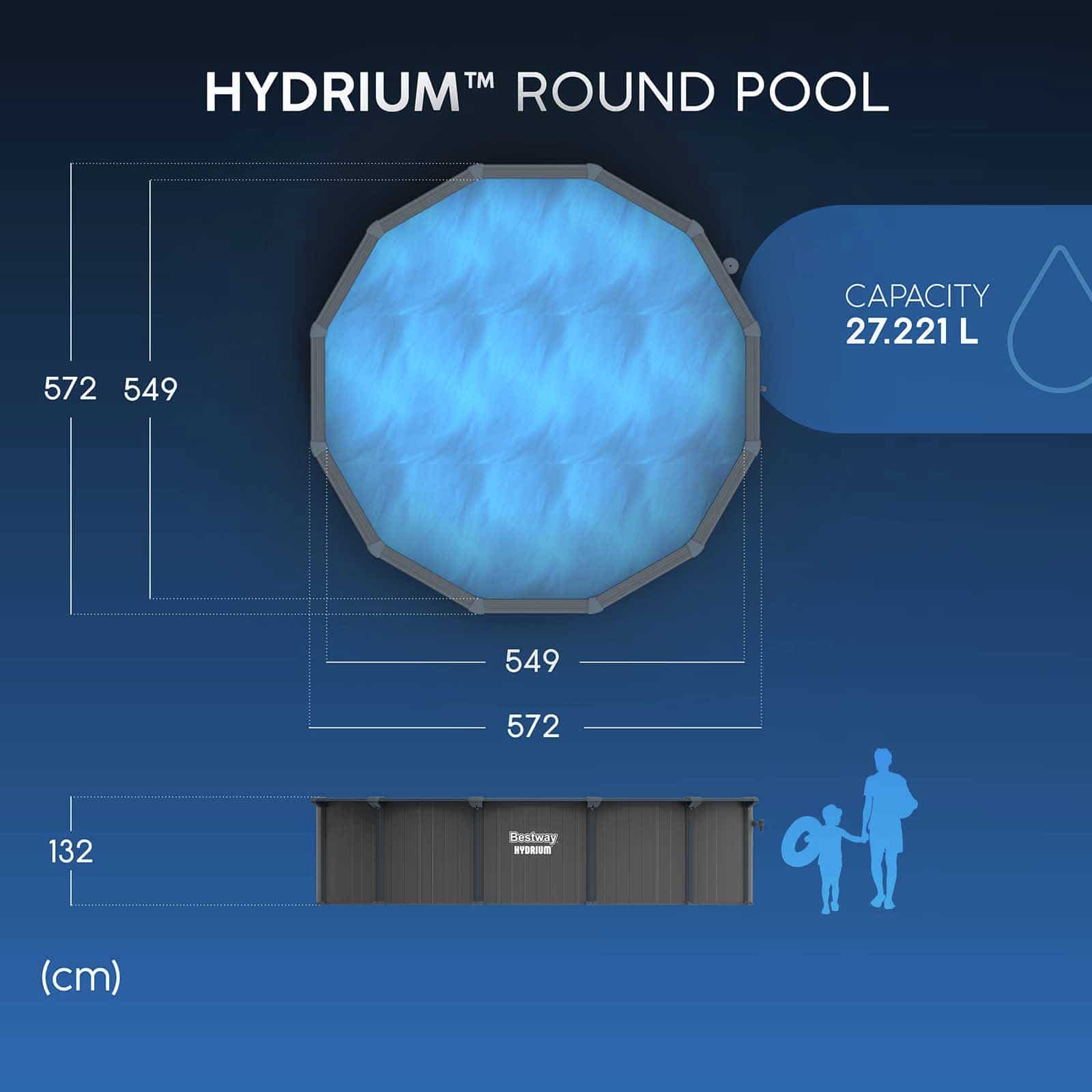 Se quer ter uma piscina no jardim sem recorrer a obras complicadas, a Hydrium™ em aço da Bestway® facilita-lhe a tarefa. É resistente, completa e concebida para permanecer montada.
