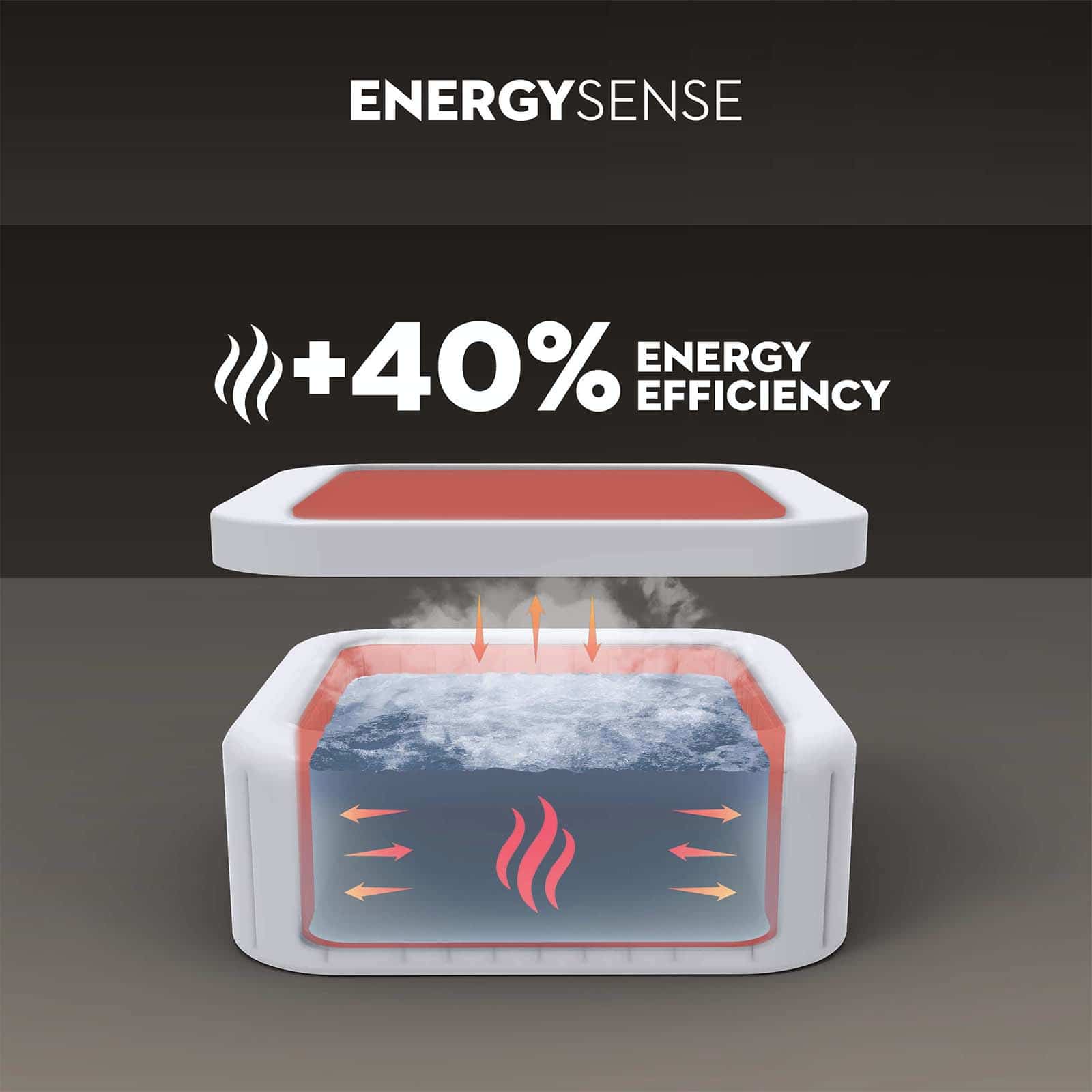 Sistema AirJet™ com 140 jatos. Estrutura interna com tecnologia MaxHold™. Exterior em material Tritech® de 3 camadas. Tecnologia Freeze Shield®. Bomba multifunções UltraFit™. Dispensador de produtos químicos ChemConnect® e cobertura de segurança reforçada.
