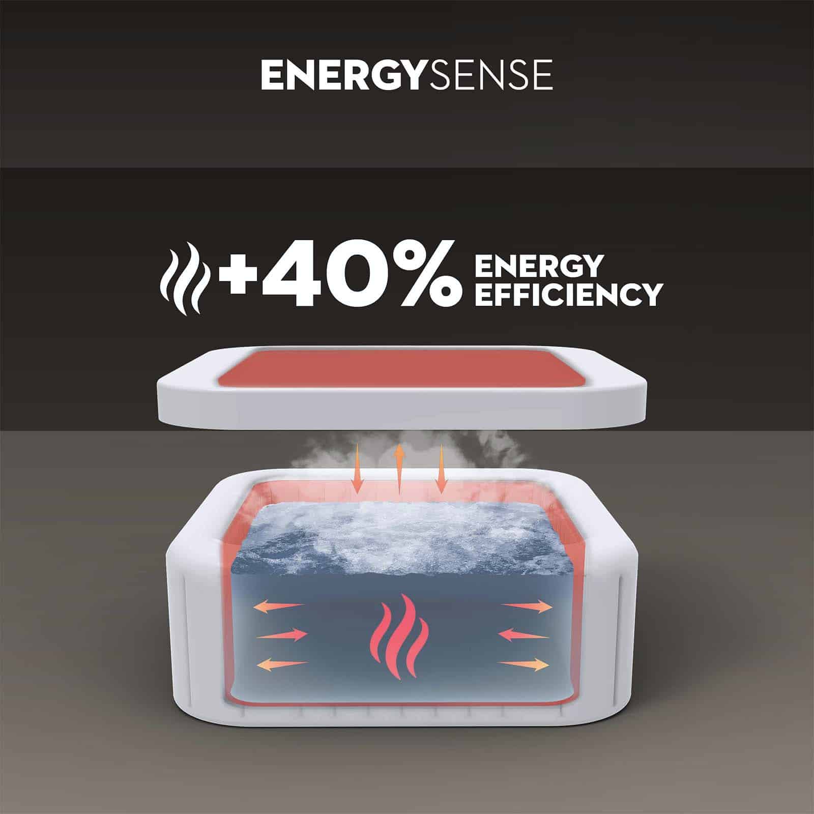 Sistema HydroJet Pro (10 bocais e 180 jatos). Material Tritech® e paredes com tecnologia ThermaCore™. Tecnologia Freeze Shield®. Bomba multifunções. Dispensador ChemConnect®. Cobertura com isolamento EnergySense®. 5 almofadas. Luzes LED. Controlo por app.