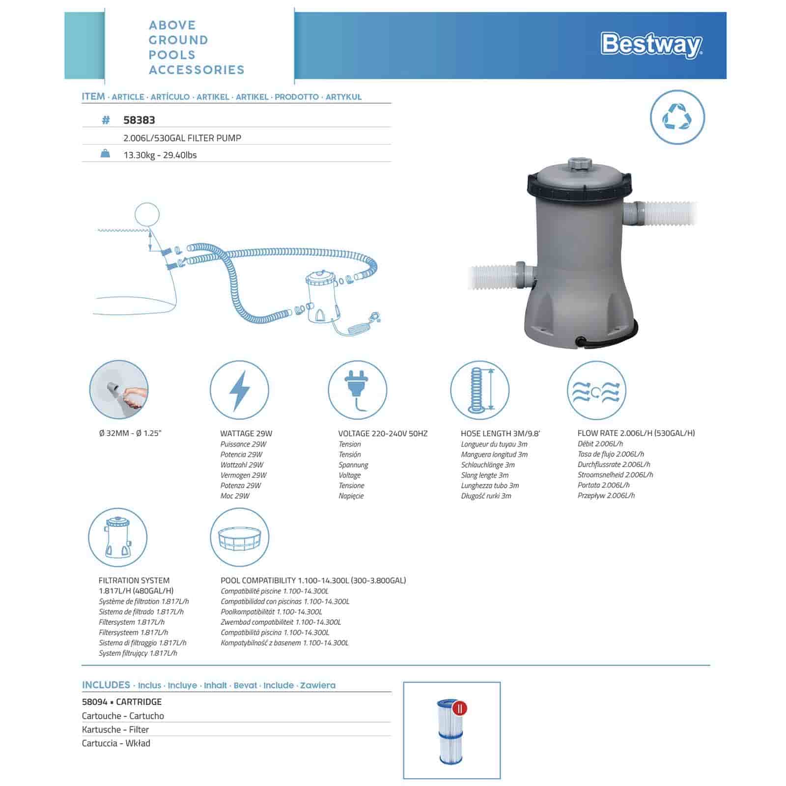 Conteúdo: 1 bomba de filtração, 1 cartucho filtrante (II)