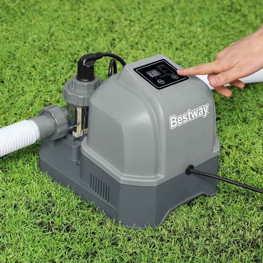 - Se tiver o clorador de água salgada Flowclear Hydrogenic 6 G/H da Bestway, utilize o painel tátil para: