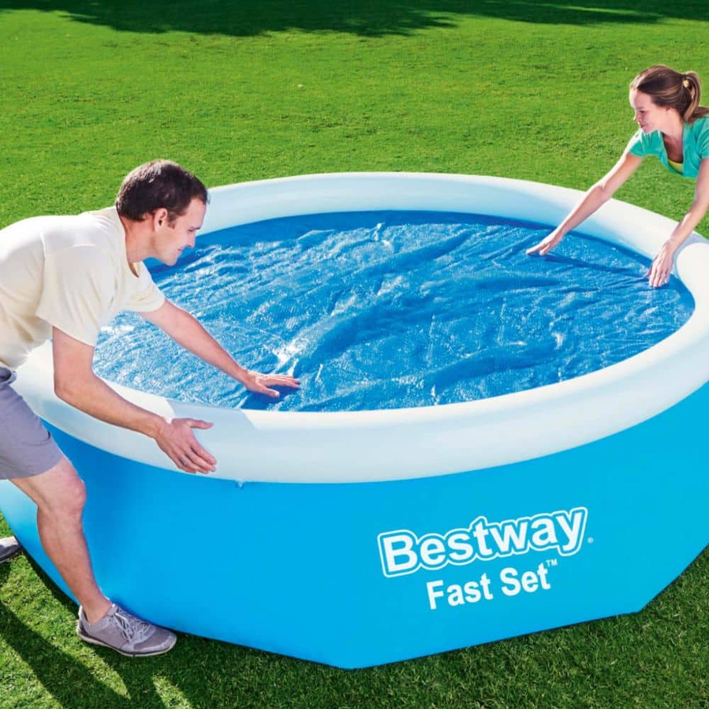 O aquecedor solar para piscinas desmontáveis Bestway Clean Sun Powered Pad pode aumentar a temperatura da água entre 3 e 5 graus.