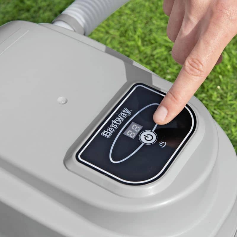 O aquecedor de água Bestway é ideal para piscinas desmontáveis elevadas com volume de água entre 1.520 e 17.035 litros. Ele foi projetado para funcionar com filtros de cartucho ou areia que tenham uma vazão máxima de 3.785 litros por hora.