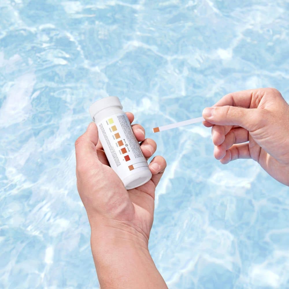 Realiza análises periódicas à água para monitorizar os níveis de pH, cloro e outros parâmetros essenciais, utilizando tiras reativas químicas. Ajusta os níveis conforme necessário e adiciona os produtos adequados para manter o equilíbrio da água.